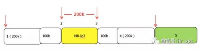 1)獨立部署(Stand alone operation):適合用于重耕GSM頻段,GSM的信道帶寬為200KHz,這剛好為NB-IoT 180KHz帶寬辟出空間,且兩邊還有10KHz的保護間隔。