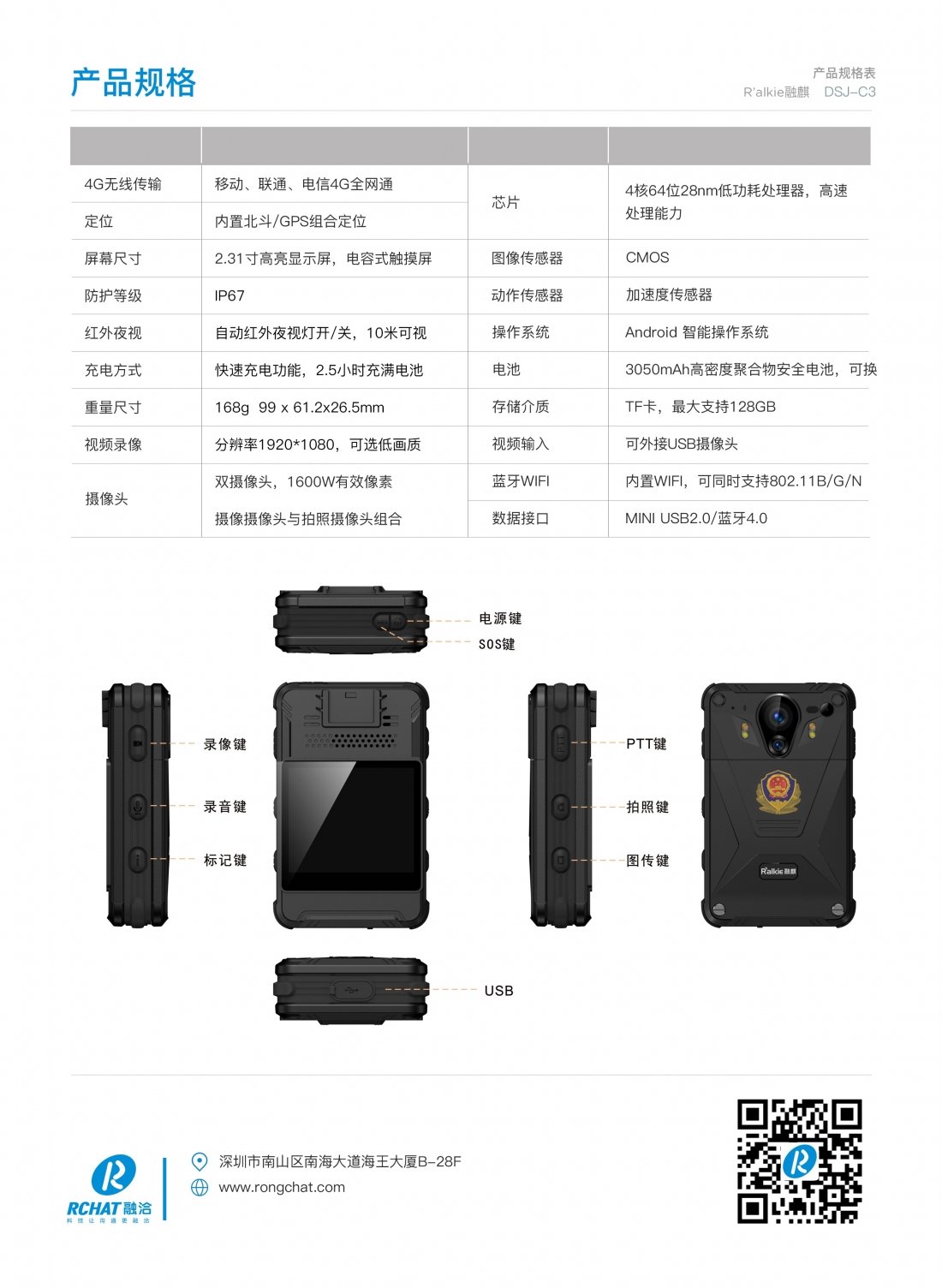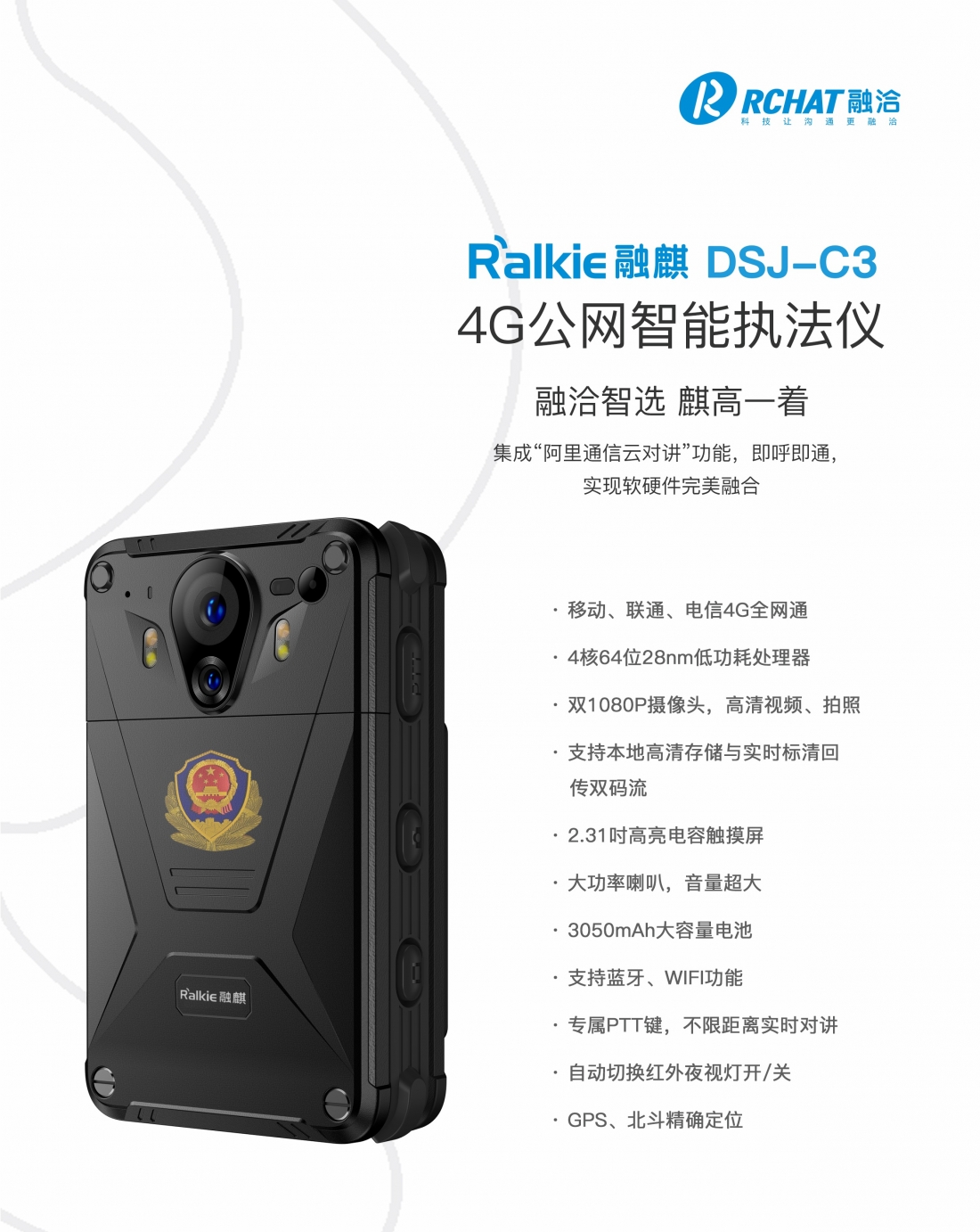 R‘a(chǎn)lkie 融麒DSJ-C3 4G公網(wǎng)智能執(zhí)法儀