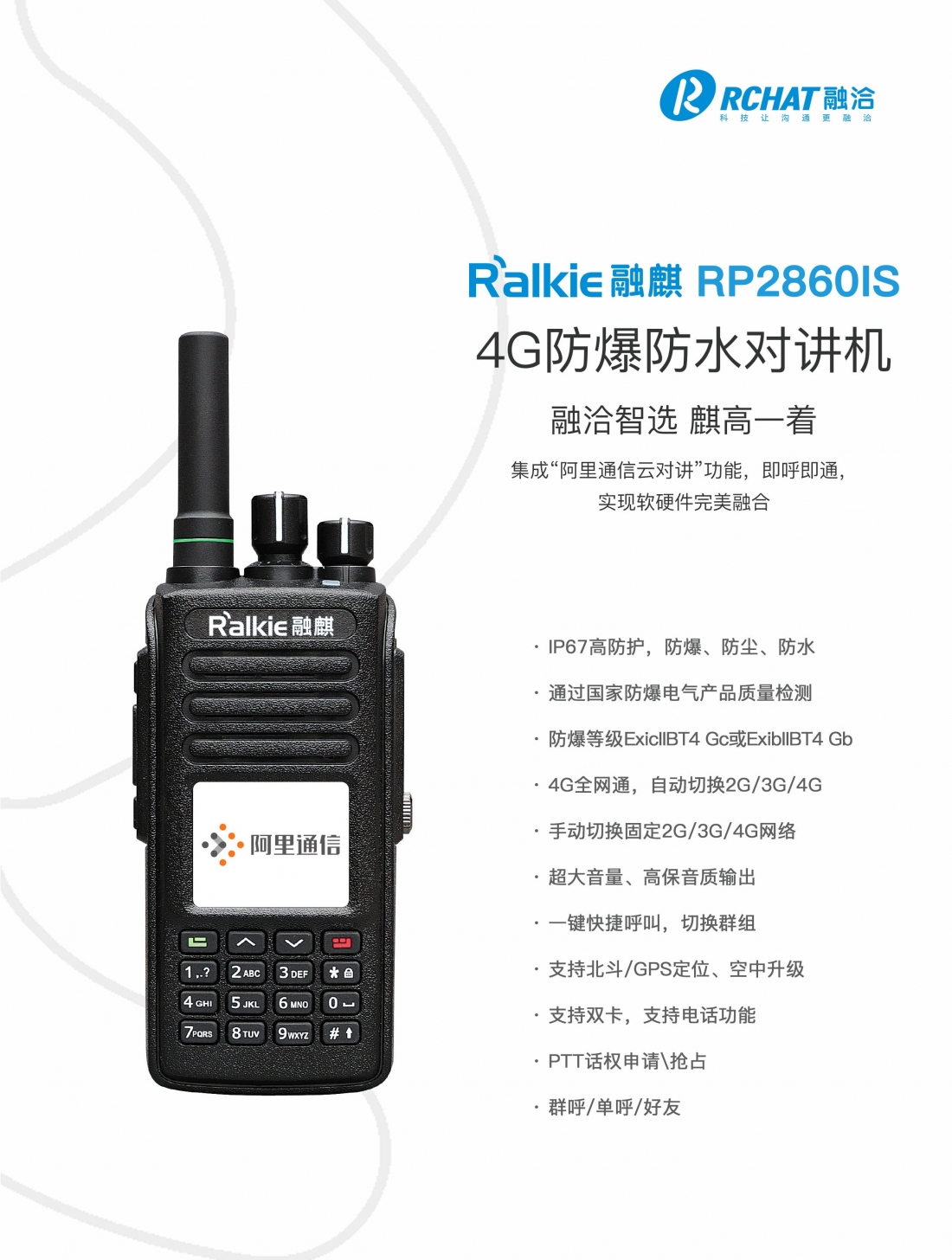R‘a(chǎn)lkie 融麒RP2860IS 4G防爆防水對(duì)講機(jī)