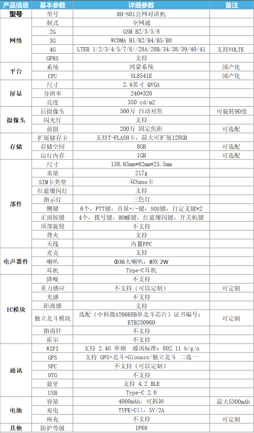RH-N01 鴻蒙系統(tǒng)公網(wǎng)對講機