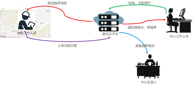 調(diào)度員為用戶設(shè)定圍欄,并設(shè)置進(jìn)入或者越界報警
